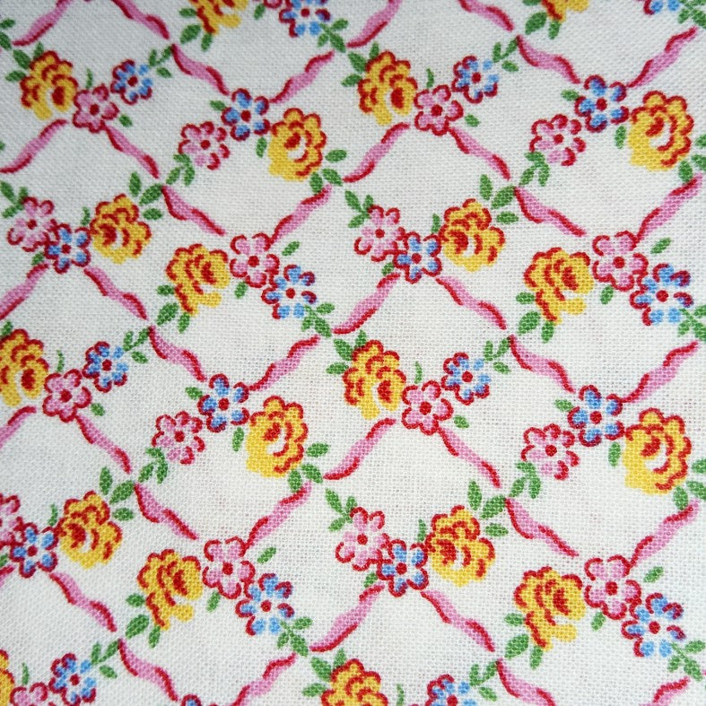 Hooked On Hankies - Lattice Yellow And Pink Flower - RJR FABRICS
