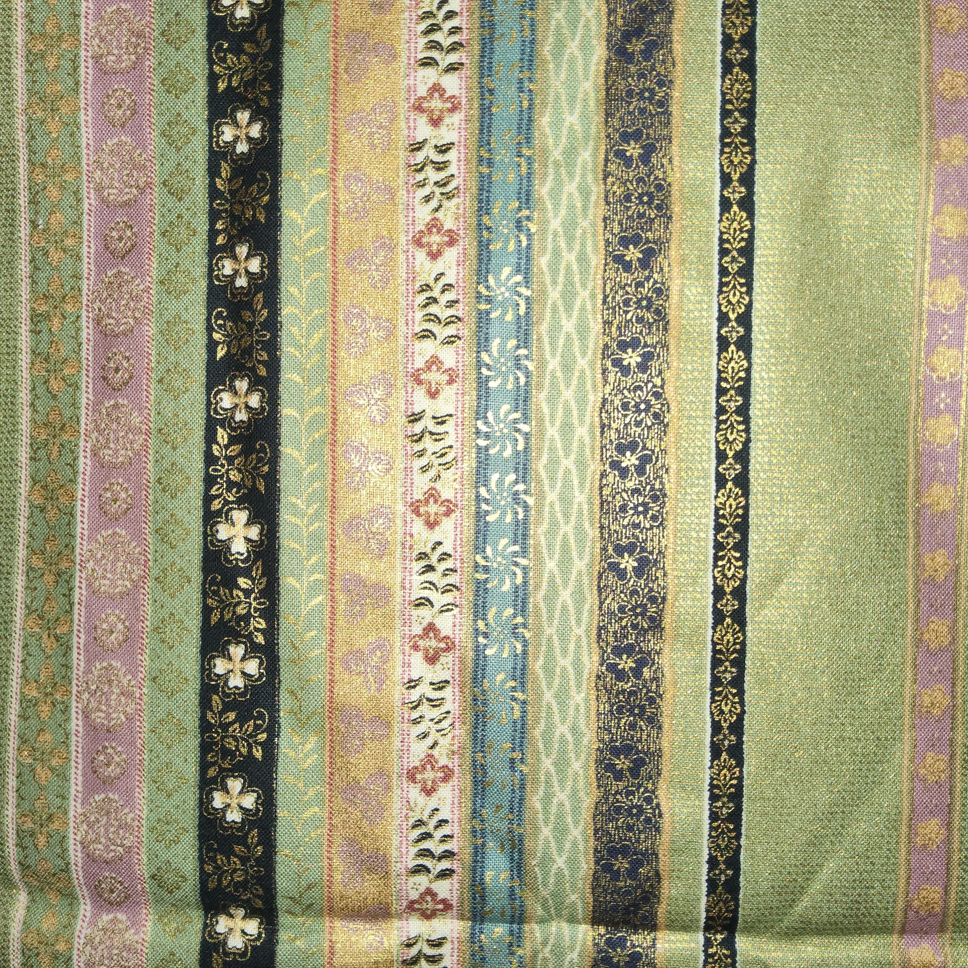 Hyakka Ryoran for Quilt Gate olive metallic multi ribbon stripe HR5820-14 *
