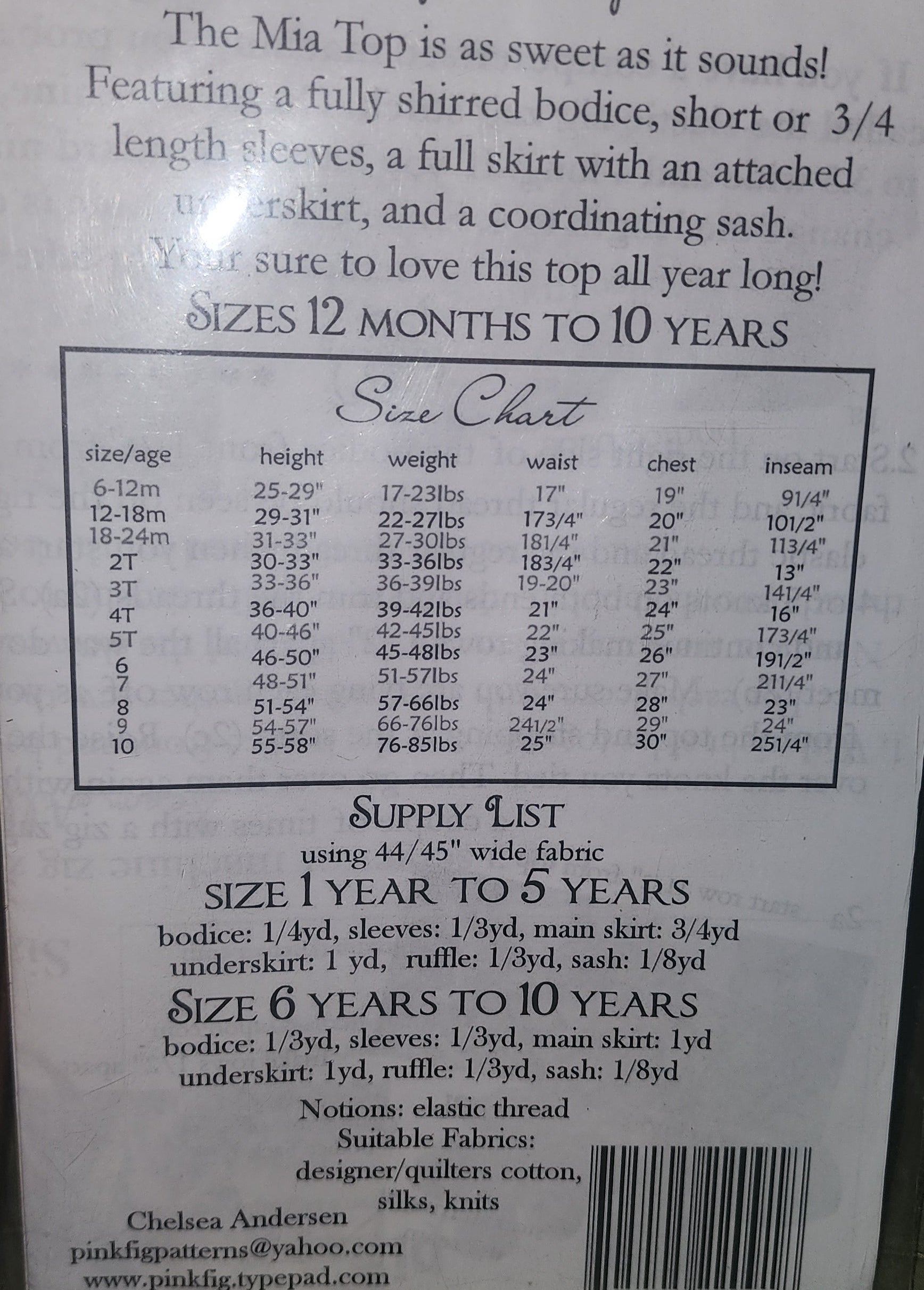 Sizes 12 months to 10 years