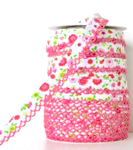 Watermelon green floral lace bias binding (double fold) PRICED PER METRE