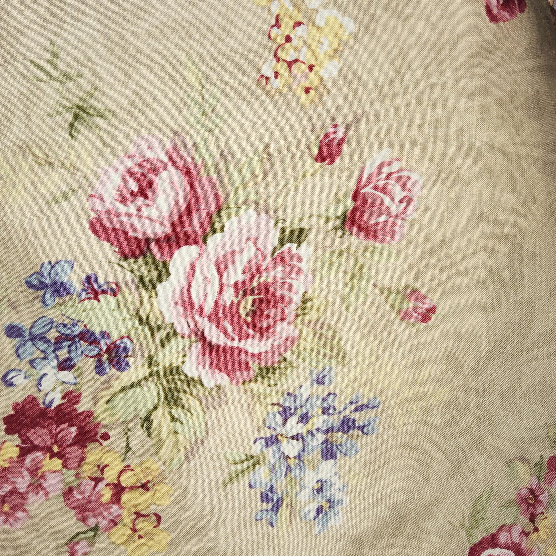 made in Japan, 100% cotton 1.5 metres wide. Background beige tonal damask print